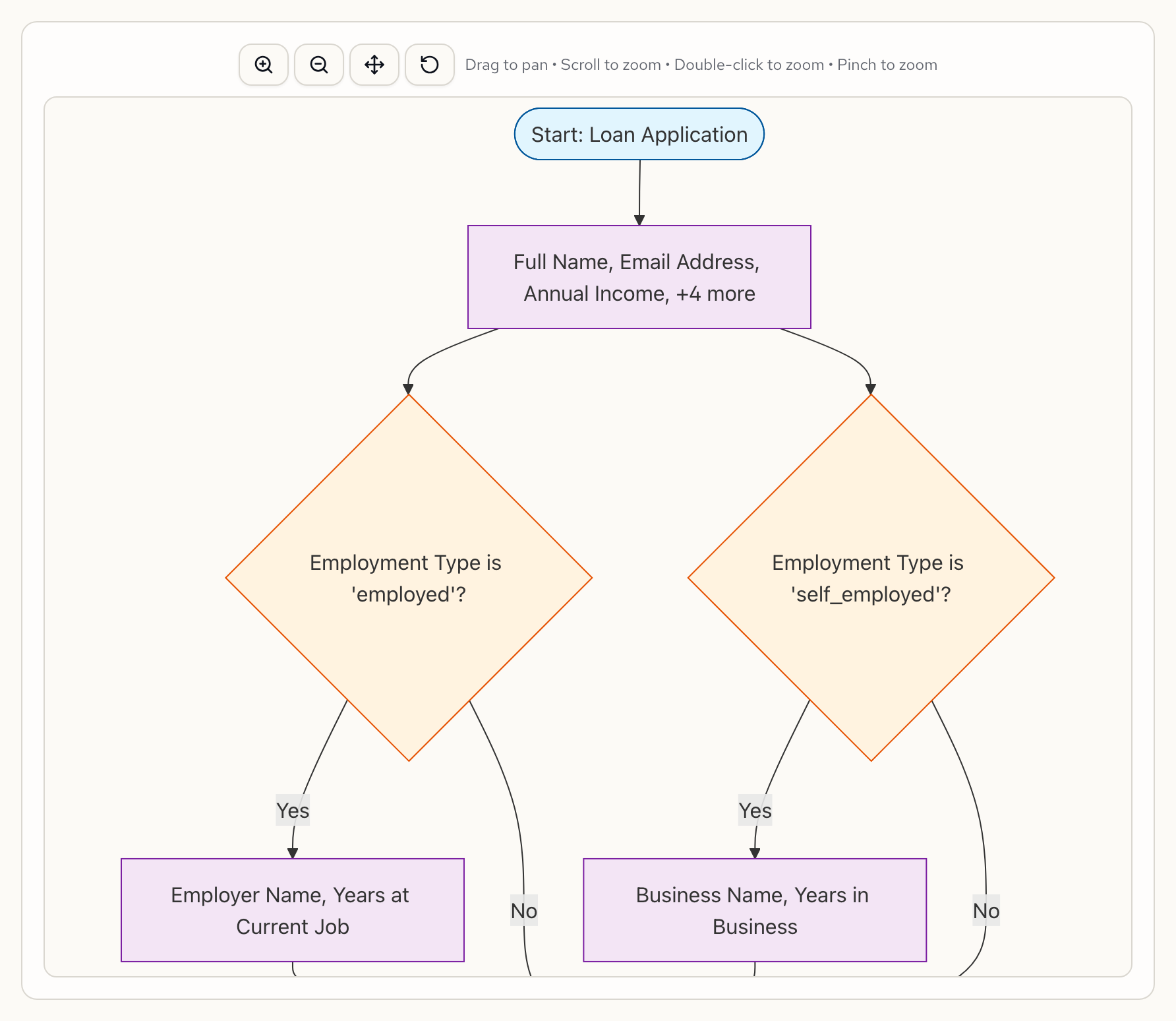 This is generated automatically from the form specification. Change the logic, and the flowchart updates to match.