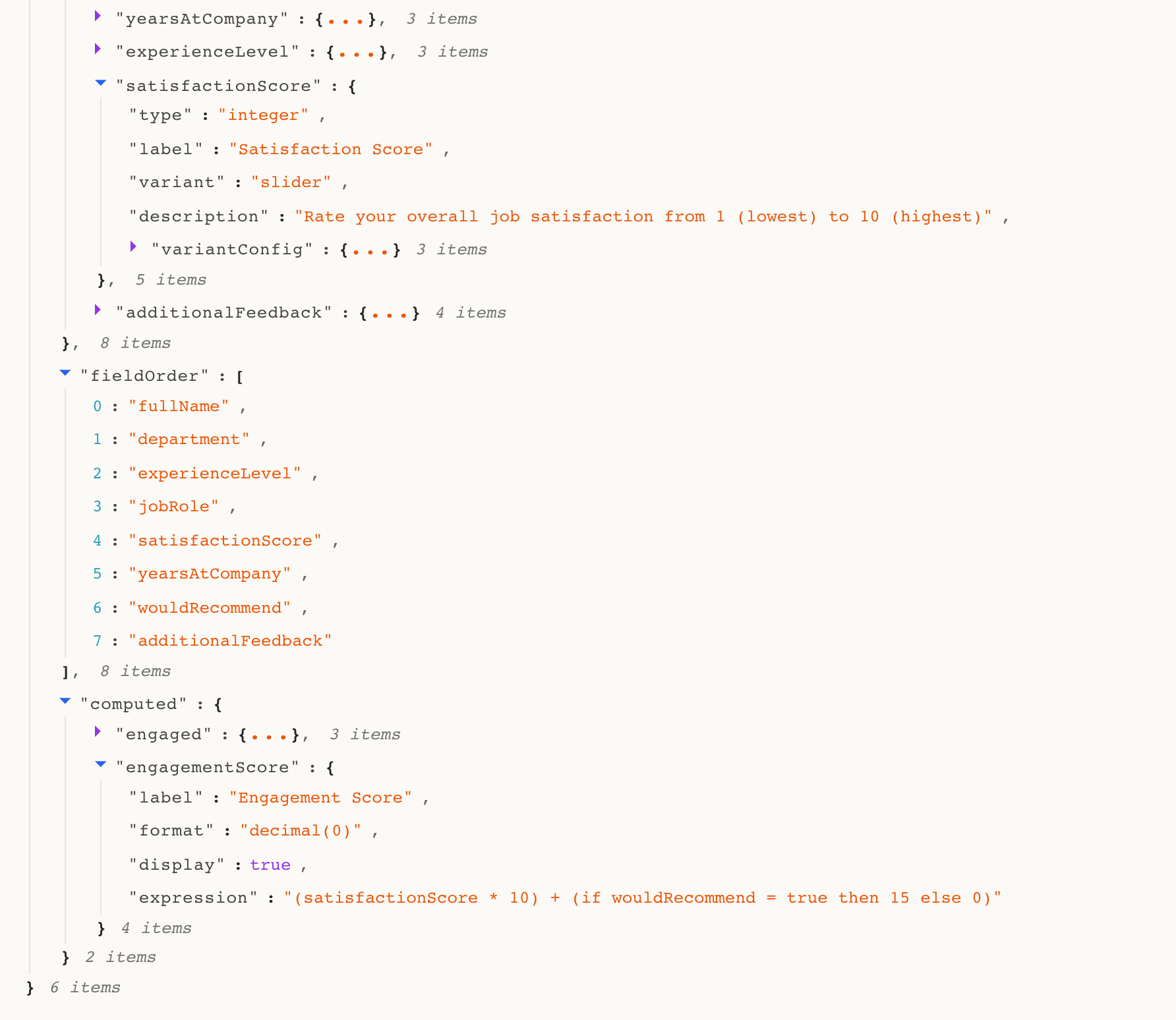 Under the hood, the computed fields are expressions in the form specification. Here's what the AI produced for this survey: